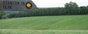 opposite slopes of this beautiful valley. The turf carries the imprint of a road, rising towards the skyline. Hummocks in the hillside show where dwellings once stood. The discerning eye, I’m told, can see the outline of enclosures for cattle. This is Nether Haddon, mentioned in the Domesday Book of 1086 and in 13th century documents, but at some time in the Middle Ages, the village disappeared. English Heritage (who list Nether Haddon as an Ancient Monument) speculate that the decline might have begun with famines or the Black Death of the fourteenth century, or even the creation of a deer park by the lord of the manor in 1330.