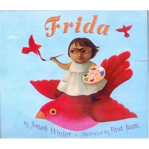 I found this beautiful children's book, FRIDA written by Jonah Winter & illustrated by Ana Juan, that encompasses her life reflecting both Mexican folk art and ex-voto paintings: