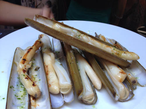Razor clams ready for eating at the Mercat de la Boqueria. Most delicious clams ever.