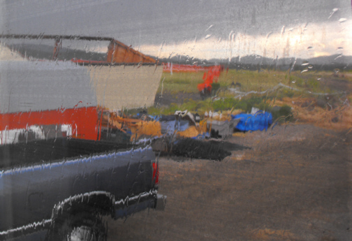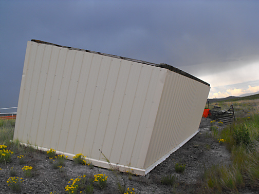 I took this photo as the late-June storm raged through and had just flipped my 12'x18'x9' hay shed onto its roof.