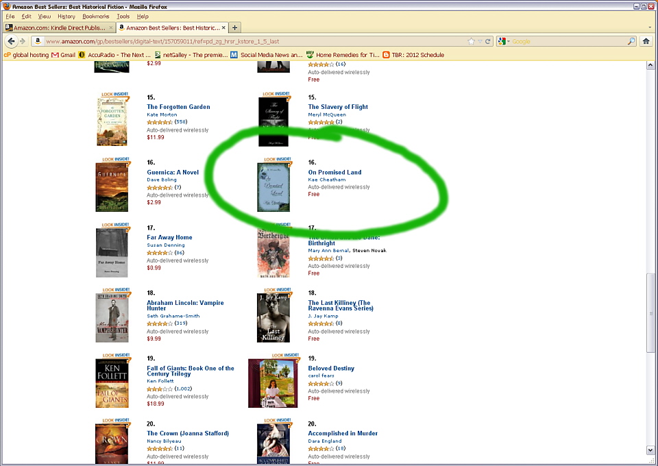 It's the last day of the free for all for On Promised Land. This morning, at 8AM MST, the title was listed #16 of free kindle historical books. That's pleasing. I had the fear I was throwing a party and no one would come.