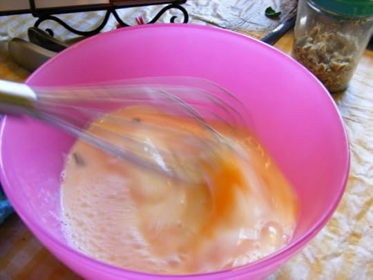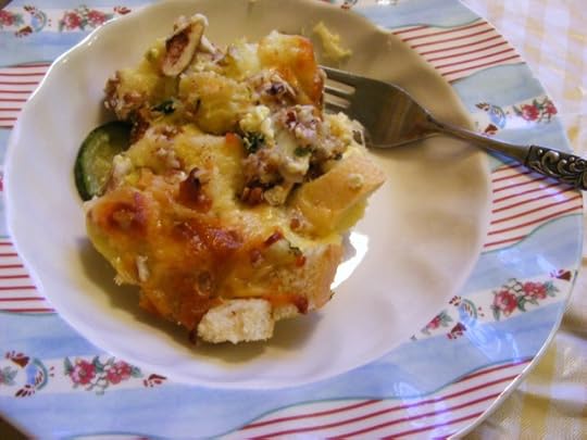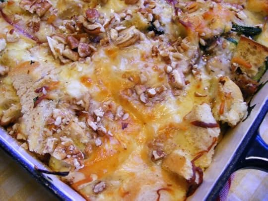 Next, pour egg/milk mixture over bread and veggies.