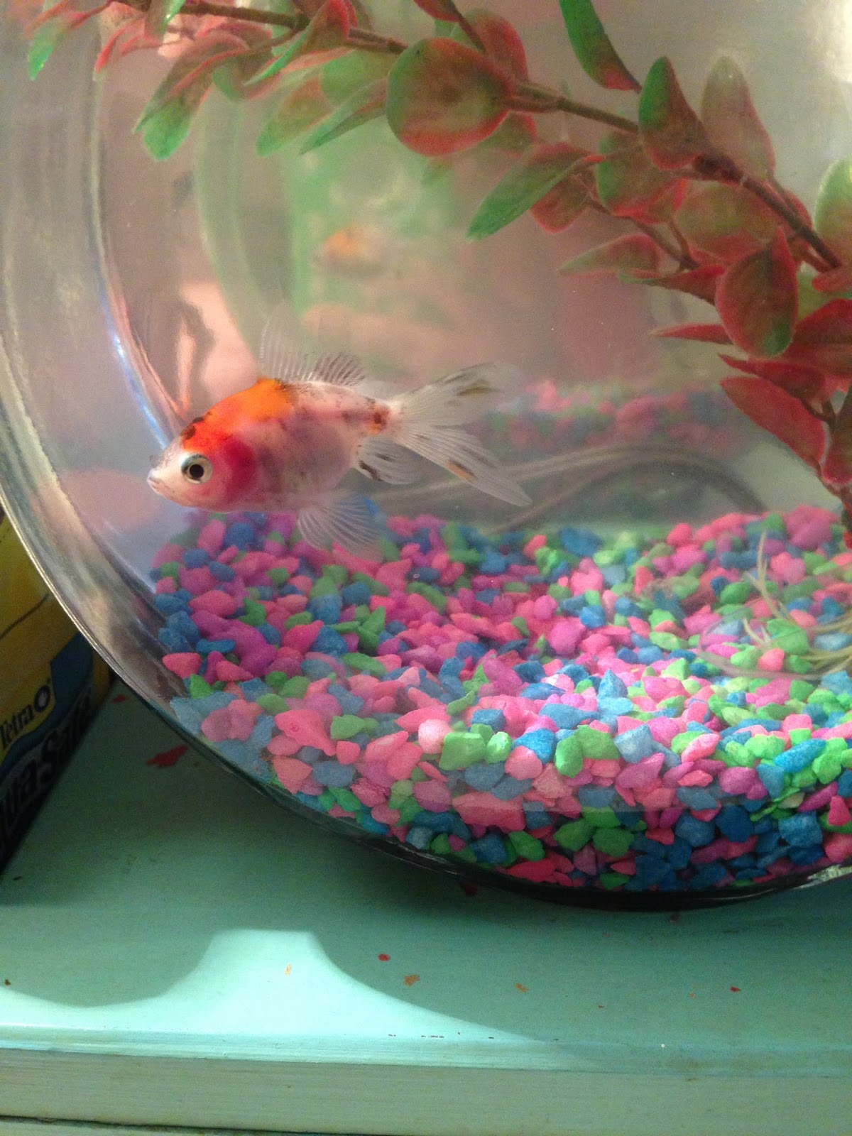 This is Brian. Technically he is Miles' fish. But really he is mine. I once kept a goldfish alive for over two years. And then my little sister Jemimah fed him MagicSand. Do you remember magic sand? That was the end of Sam the fish. My tip for keeping gold fish alive: don't wash their bowls with soap. Ever. Only with really really really hot water.