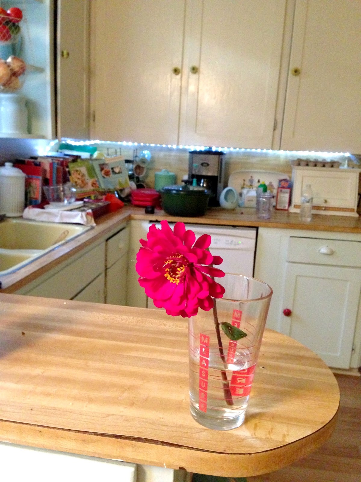 This is a Zinnia that Speck picked at small roadside farm and market. I love Zinnia's. I am thinking I should grow some next year... Have you ever planted any??