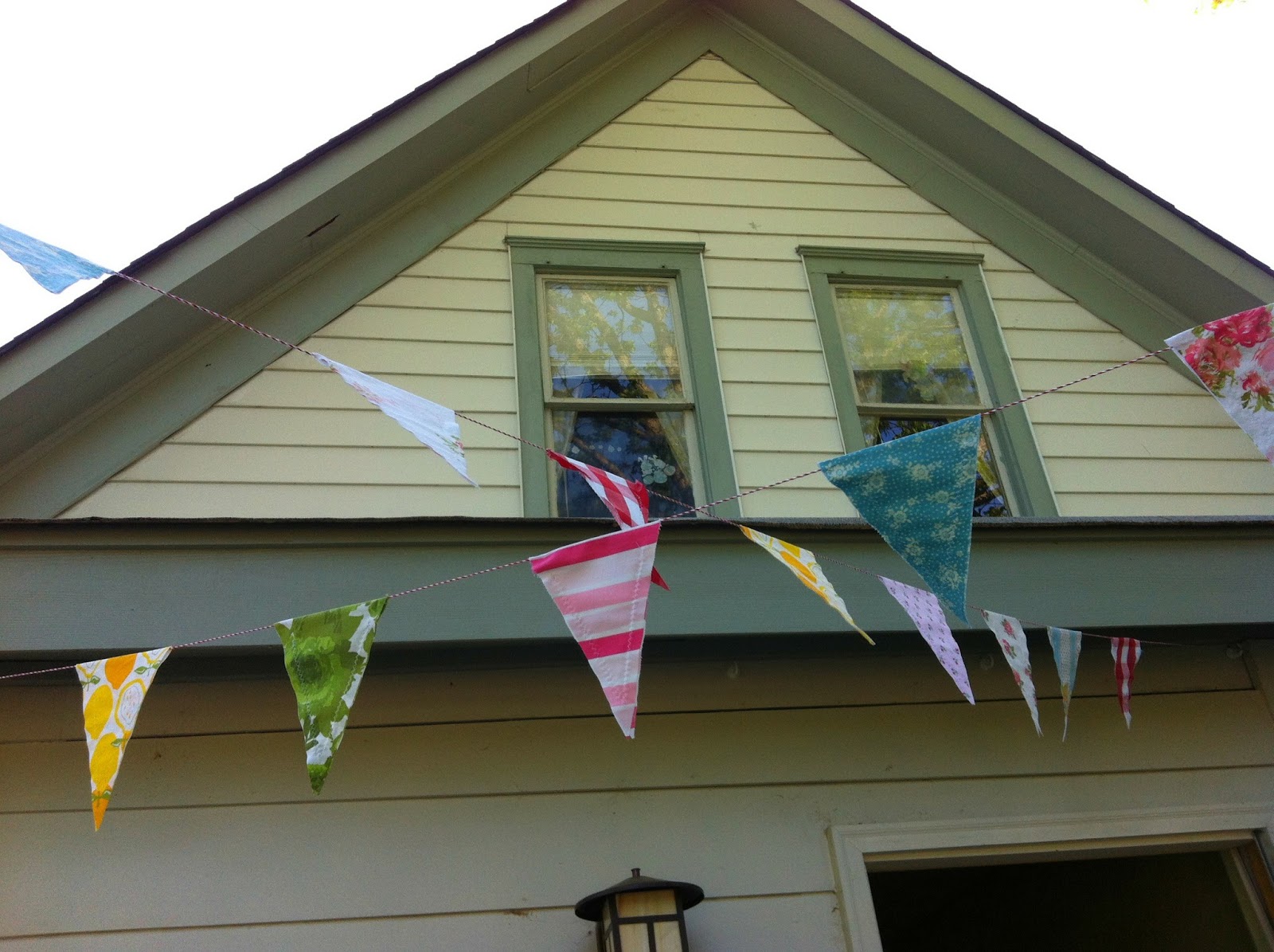 Don't you love this set up? I used the left over tablecloth from the garden bunting to add this little faux awning look over the swing.