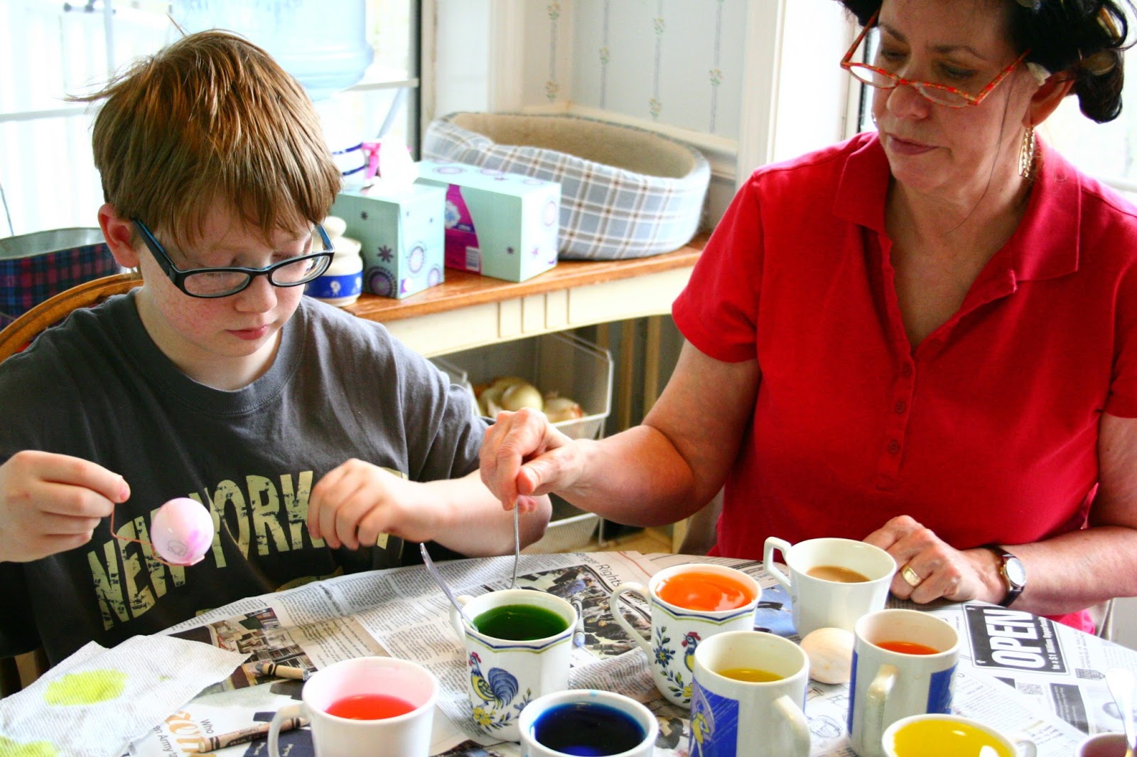 Every year we boil more eggs than we can eat. And we make up the dye in the same coffee mugs.