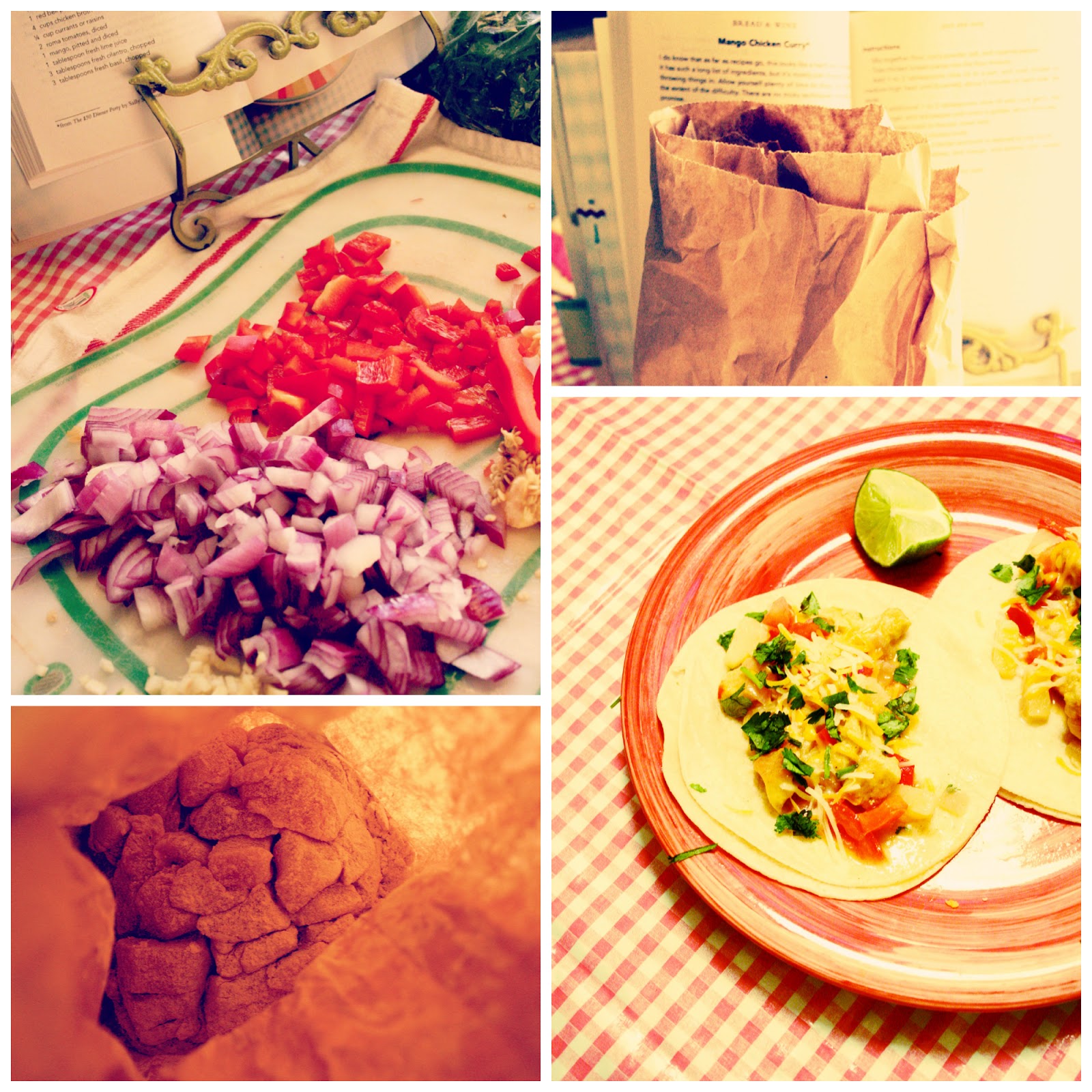 Now, lest you think Shauna would be irritated by my changes, let me assure you that she is not. Part of Shauna's cooking philosophy is make it your own. She wants you to find your way to connect, create and enjoy the process of cooking for others and yourself. All throughout Bread & Wine, Shauna shows time and time again, the wonderful, magical things that can happen, when you open your heart- and your table- to and embrace and explore new methods, new flavors, new challenges, new friends, and try things you would never have tried before. Like curry tacos.