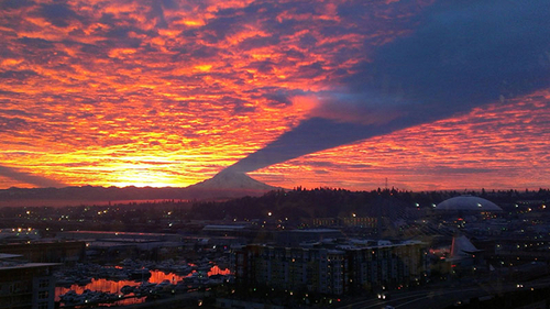This is a rare meteorological phenomenon called a skypunch. When people see these, they think it’s the end of the world. Ice crystals form above the high-altitude cirro-cumulo-stratus clouds, then fall downward, punching a hole in the cloud cover.