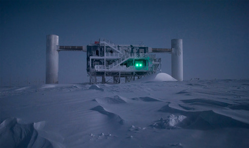 The IceCube Neutrino Observatory, illuminated by moonlight. Scientists are using the world’s biggest telescope, buried deep under the South Pole, to try to unravel the mysteries of tiny particles known as neutrinos, hoping to shed light on how the universe was made. (Reuters/Emanuel Jacobi/NSF)