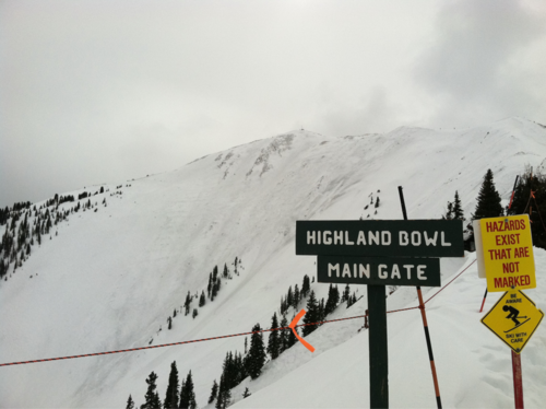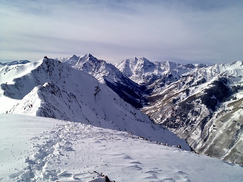View from the top of Highlands Bowl. Rough hike, but the view, and two feet of untracked powder all the way down, made it more than worthwile!