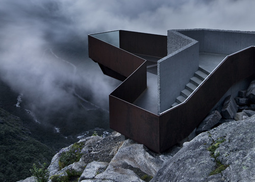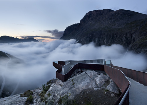 Zig-zagging pathways lead to viewing platforms perched high in the Norwegian mountains in this visitor facility designed by Reiulf Ramstad Architects