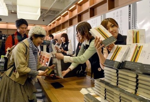 Fans of Japanese author Haruki Murakami buy his newly published book in Tokyo on April 12, 2013. More here.