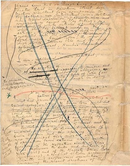 Manuscript fragment of James Joyce’s Ulysses, via The Morgan Library & Museum. Click the link to zoom in on the manuscript so you can read all of Joyce’s squiggles.