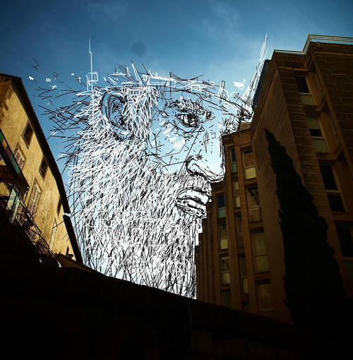 Genius French artist Thomas Lamadieu has illustrated a series of scenes in the sky directly onto photographs of urban landscapes.