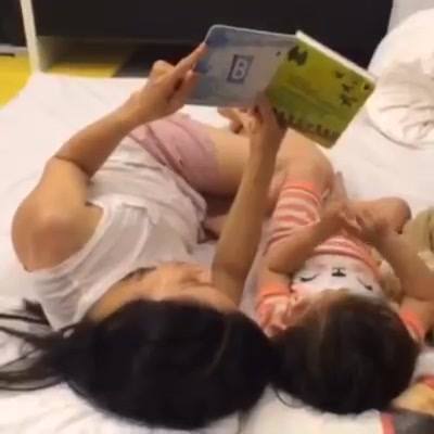 Journalist Lisa Ling and her child doing an adorable interactive reading of A is…