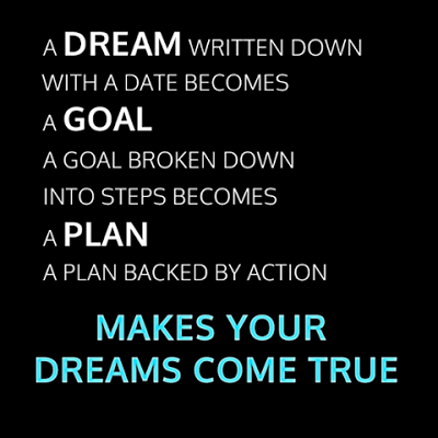 A dream with a deadline becomes a goal. A goal broken down into steps becomes a plan, and a plan backed up by action makes your dreams come true. The key is to work backwards to create the reality you want. The key is to do something, ANYTHING every single day that will get you closer to your goal. Keep on moving forward and success won't be far behind.