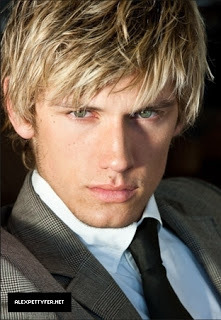 For my hero, Drew Hudson, it would be Alex Pettyfer. He's got those great green eyes and that to die for curly blond hair. And in this picture he looks like my corporate shark lawyer.