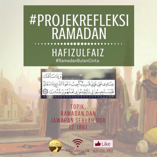 Ayat 186 Surah al-Baqarah ini hadir sejurus sahaja selepas ayat tentang Ramadhan Allah turunkan. Saya serahkan kepada pembaca sendiri bagaimana mahu meneliti perkaitan indah ayat ini dengan keistimewaan Ramadhan. Di dalam ayat ini Allah menggunakan perkataan أجيب yang bermaksud "Aku menjawab". Bererti Allah menjawab sekarang dan akan-akan datang. Fe'el Mudhori' membawa maksud sekarang dan akan datang. Allah tidak menggunakan perkataan "أستجيب" yang membawa maksud "Aku akan menjawab" kerana ia tertakluk dalam ruang masa "akan datang". Allah mahu menjawabnya sekarang dan juga akan datang.Juga perkataan دعوة yang bermaksud satu doa. Bukan دعاء yang bermaksud banyak doa. Bererti meskipun hamba itu hanya sekali sahaja berdoa dalam hidupnya, meski satu sahaja doanya, Allah tetap akan menjawabnya juga, sekarang dan akan datang.Kemudian perkataan الداعي yang datang dalam bentuk "Ma'rifah" (ada ال) yang bermaksud kata nama khas, atau "known". Bererti Allah tidak menganggap sang pendoa itu "anonymous", sebaliknya Allah mengenali mereka secara dekat meski mereka ramai tidak terkira.Dan dalam ayat ini Allah menggunakan kata nama "Aku", bukan "Dia" dan bukan "Kami". Kata nama "Aku" kata nama pertama. Syarat kata nama pertama ialah yang bercakap mesti berada dekat dengan yang mendengar.Betapa Allah menanti doa-doa hamba-hambaNya. "Dan apabila hamba-hambaKu bertanya kepadamu mengenai Aku maka (beritahu kepada mereka): sesungguhnya Aku (Allah) sentiasa dekat; Aku jawab doa orang yang berdoa apabila ia berdoa kepadaKu. Maka hendaklah mereka menyahut seruanku (dengan mematuhi perintahKu), dan hendaklah mereka beriman kepadaKu supaya mereka menjadi baik serta betul." (2:186).Hafizul Faiz8 Mac 2016