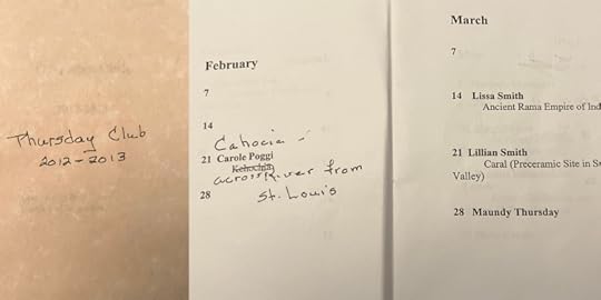Hidden Beneath went out into the world last June and I thought that was the end of it. Then I happened to come upon the little book with the paper topics and authors from my mother’s last year and noticed a friend of hers had delivered a paper on the history of the club. Sure enough the friend was on Facebook. Desperate for a blog topic last August, I reached out. A month or so ago a package containing not one but three histories of the Thursday Club arrived in my mailbox. All three histories are so charming and amazing and illuminating I wish I could offer you the chance to read them in their entirety but here are some excerpts for you to enjoy.