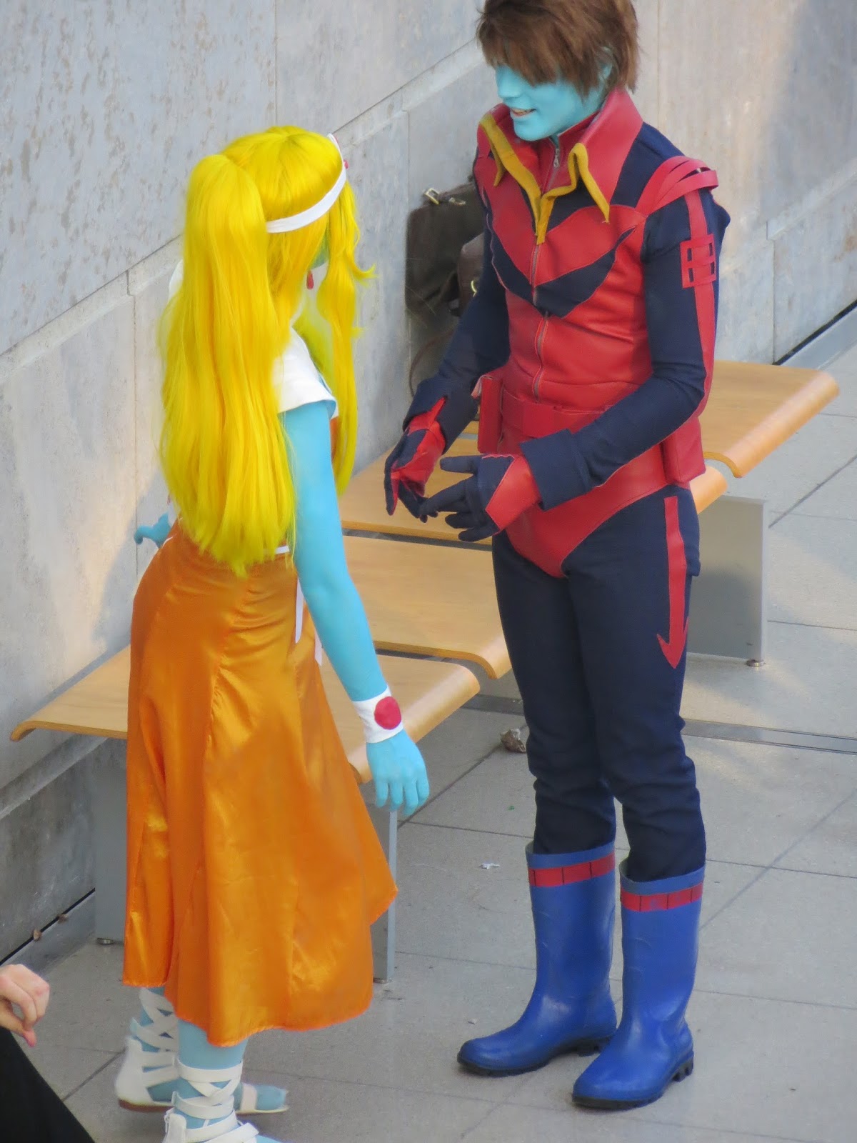 Zu guter letzt: Das tollste an der Leipziger Buchmesse ist, dass Fantasy- Charaktere nicht in ihren Büchern verbleiben, sondern rauskommen und durch die Ausstellerhallen wandeln. Jugendbuch-Comic-und Manga-Halle 2 ist immer wieder ein buntes Spektakel. Halle 2 wird von mir bei keiner Messe ausgelassen. Letztes Mal konnte ich die Rußmännchen aus Hayao Miyazakis Film "Mein Nachbar Totoro" erstehen. Nun wuseln sie durch unsere Wohnung und machen überall Dreck. Aber sie sind echt nett. Ich bin ein absoluter Miyazaki-Fan. Diesmal Naruto-Plakate, die mein Sohn dringend für seine Wände braucht.Der Cosplay-Rausch auf der Leipziger Buchmesse sorgt immer für eine ganz besondere Stimmung. Und, ich weiß nicht, unter diesen ganzen Jugendlichen fühle ich mich einfach wohl. Hat wohl irgendwas damit zu tun, dass ich am liebsten Bücher mit jungen Helden schreibe. Gerade liest mein Sohn (gestern 16 geworden) Himmelstiefe und sagte letztens zu mir: "Mensch, Mama, du schreibst ja so, als wärst du so alt wie ich!" Gibt es ein besseres Kompliment? :)