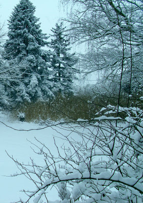 So sieht das heute vor meiner Haustür aus, und aktuell pustst und stürmt es, denn der Himmel legt noch eine ordentliche Schippe obendrauf. Ich liebe Schneetreiben, ich liebe Schnee, und sowieso hab ich's gern kühl. Wenn schon Winter, dann gefälligst nur so, bitte.
