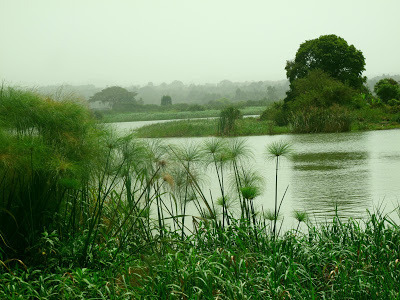 Noch vor einer Woche war mein Ausblick ein anderer. Da stand ich, bei Temperaturen von nicht unangenehmen fünfundzwanzig Grad, im äthiopischen Hochland an jener Stelle, wo der Tana-See den Blauen Nil auf dessen lange, lange Reise gen Khartum entlässt, wo er sich dann endlich mit seinem weißen Gegenstück vereint.