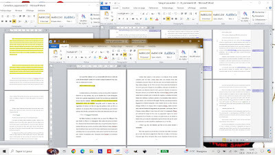 Ce petit changement de plan, ainsi que le travail qui est venu avec (relecture et révision de Trou noir pour la préparation à l'édition) m'a forcée à revoir le calendrier pour le 2e et dernier tome de Sang et poussière. Mais n'ayez crainte! El est toujours prévu pour l'automne, quoique les révisions me demandent plus de temps qu'anticipé (preuve à l'appui sur photo ci-bas; vous pouvez y voir le doc Word de ma directrice littéraire, le doc Word des segments supprimés, ainsi que le doc Word du manuscrit en cours de correction). Encore une fois, surveillez Facebook et TitkTok pour tous les détails de la parution Amazon de Sang et poussière - El!