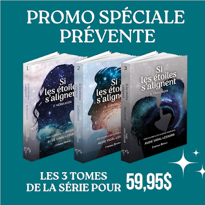 Si les étoiles s'alignent est maintenant complet! Vous pouvez mettre la main sur les trois tomes de la trilogie dès maintenant (on m'a mentionné, au SLM, que le tome 1 est en rupture de stock dans plusieurs librairies). Vous pouvez toutefois commander vos exemplaires directement sur le site web de Luzerne et profiter de la livraison gratuite dès 60$. Sinon, venez me voir dans un prochain Salon du Livre! :P