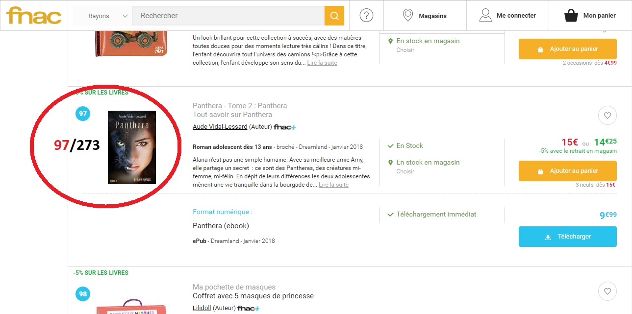 Et il y a des journées, comme aujourd'hui, où la vie me donne une petite tape dans le dos pour me rappeler qu'écrire, je ne fais pas ça pour les autres. Je fais ça pour moi, et pour sentir ces petites ailes de papillons dans mon estomac quand je vois que trois jours à peine après sa sortie en Europe, un de mes petits bouquins se retrouve en 97e position des ventes jeunesses sur la Fnac.