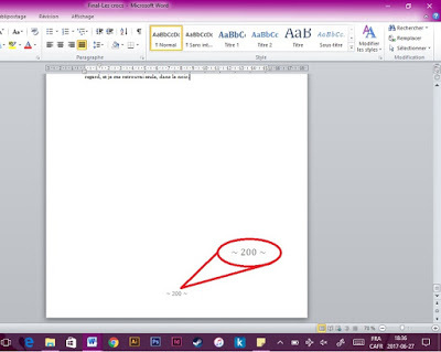 Voilà ce que ça donne quand j'arrive à être productive pendant mes jours de congés : j'écris près de 2000 mots, je complète un chapitre de Pan3, et je touche les 50% de complété du bout des doigts. Si ça pouvait être comme à tous les jours, P7 serait complété et H&E1 serait déjà envoyé à l'éditeur! *rires*Mais, ne nous décourageons pas, si je suis certes au boulot ce soir, c'est congé demain! Alors les paris sont ouverts : 500 mots pour demain? 1000? Plus?!J'aimerais bien. ;)