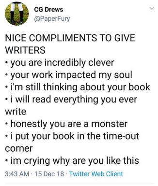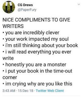 Surveillez le blog pour les 4 autres points de ma liste des choses à ne pas dire à un auteur! ;)