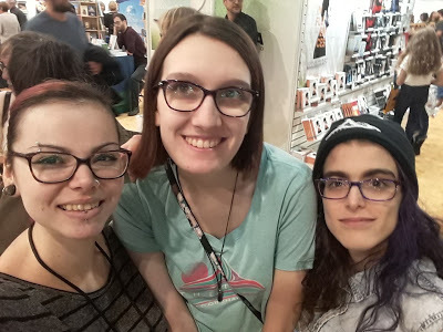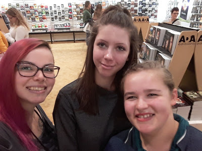 De gauche à droite : votre auteure préférée, Camille, et Judith, toutes les deux fan de Seamus Panthera.