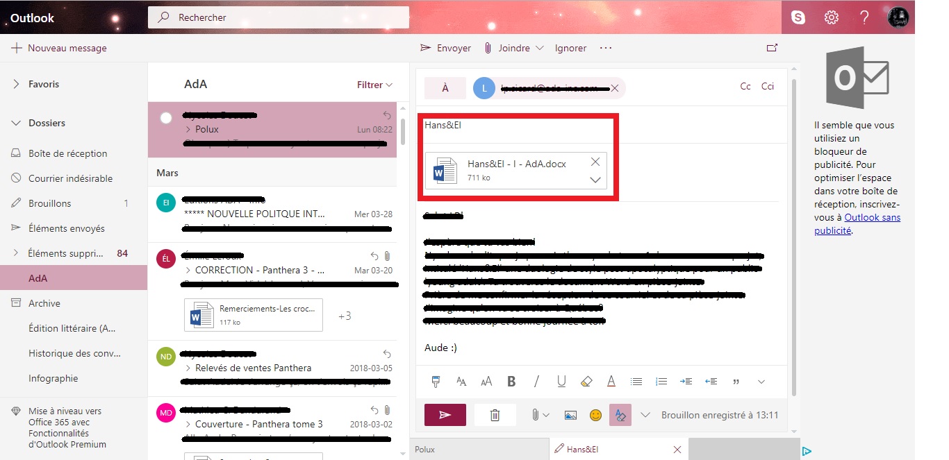 H&E1, envoyé à l'éditeur 2 de 4! Long délai depuis l'envoi numéro 1, me direz-vous? Ouais, c'est vrai, mais j'en ai profité pour jaser d'un autre projet avec l'éditeur numéro 2... ;) Curieux d'en savoir plus? Ça tombe bien, je serai au Salon International du Livre de Québec dès demain (jeudi 12 avril), 13h, et je répondrai à vos questions! ;)