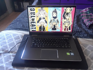 Le temps de me dénicher un nouveau portable et de le faire programmer, deux semaines de plus étaient passées, de sorte que j'ai passé quatre semaines sans ordinateur. QUATRE SEMAINES. *insérer ici le cri de désespoir de votre choix* Un petit retour aux sources m'a permis de poursuivre malgré tout la rédaction de P7 et de H&E2 via crayon et carnet ligné. Vous vous imaginerez bien, toutefois, que toutes ces péripéties m'ont quelque peu retardée dans mon horaire d'écriture. Ouaip.