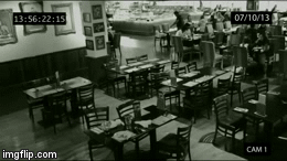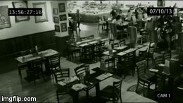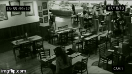 A customer in the Luton restaurant told management that they saw another customer’s plate fly off their table. They checked the CCTV footage and saw the following.