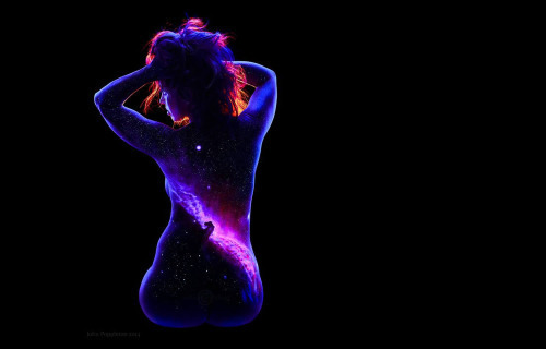 Electrifying Body Paintings Viewed Under Black LightThese bright-colored visuals could have been projection mappings on bodies, but that would be too simple a task for photographer John Poppleton. Instead, he uses UV paints to illustrate auroras, nebulae, and