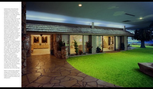 With the idea that a family might have to live for years underground after an atomic war due to radiation, visionary Jay Swayze created the ‘ship in a bottle’ concept, where a full-sized house could be built within a concrete shell, decoratively painted to resemble the outside world.