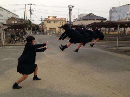 What will happen if humans suddenly have superpowers? Lots of people will be blown away, as first demonstrated by some Japanese high school girls photographing themselves receiving the Makankosappo, a destructive energy wave that throws victims a few feet back.