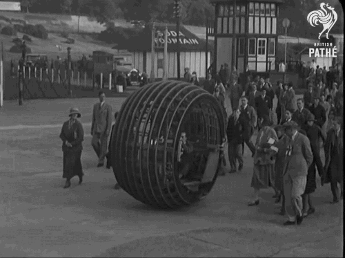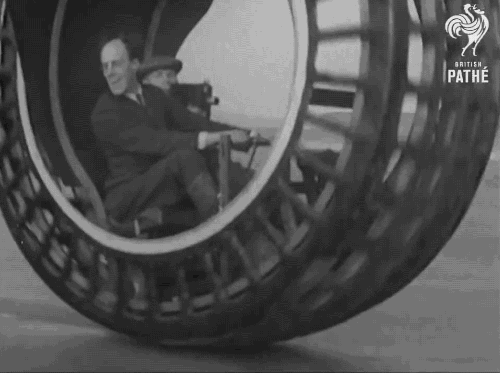 1932’s Dynasphere! A one-wheel four-seater. Via British Pathé