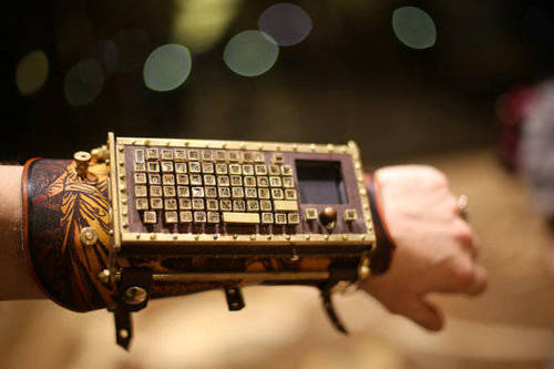 Steampunk wrist-keyboard in a leather buckler