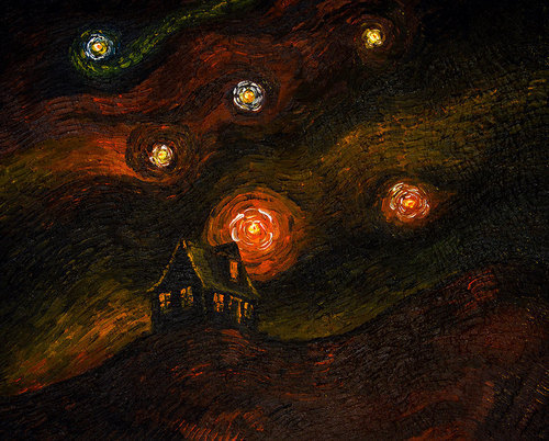 For purchase from the artist: https://www.etsy.com/listing/194867516/the-whateley-house-van-gogh-meets