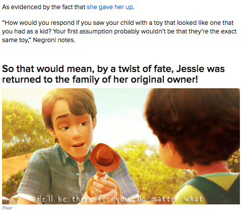 New Pixar theory that claims the girl who gives up Jesse actually grows up to be Andy’s mom.