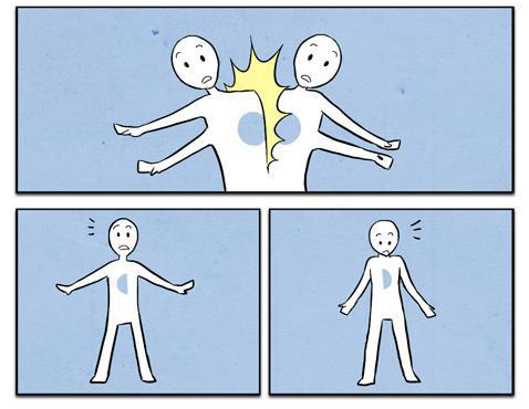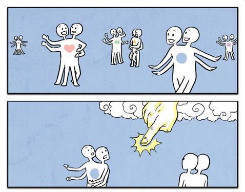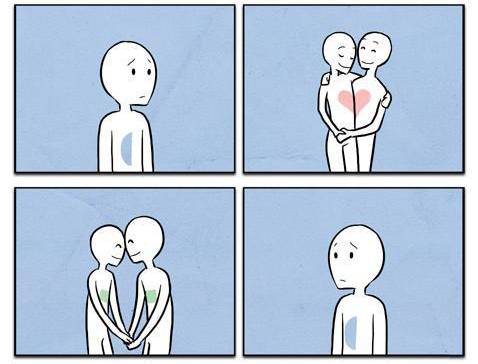 “According to Greek mythology, humans were originally created with four arms, four legs, and a head with two faces. Fearing their power, Zeus split them into two separate beings condemning them to spend their lives in search for their other halves.”