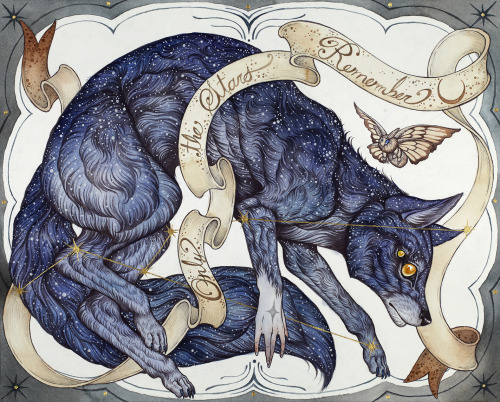 a new piece inspired by the Vulpecula constellation, part of a series of star creatures I hope to make. This original 16″ by 20″ painting is in my shop now at www.caitlinhackett.storenvy.com