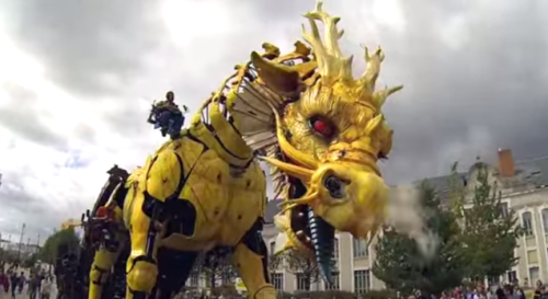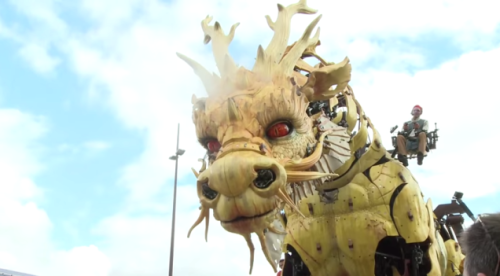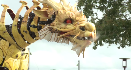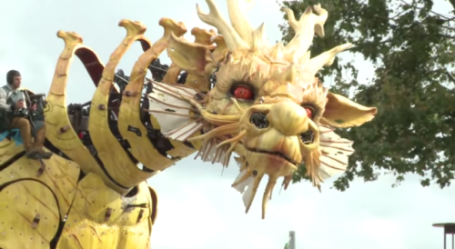This marvelous interactive sculpture was just debuted in the French city of Nantes and will soon be traveling to Beijing where he’ll be presented in October as part of the celebration of the 50th anniversary of diplomatic relations between France and China. Long Ma is based on a creature from Chinese mythology, Longma, a fabled winged horse with dragon scales, and will be the hero of a performance entitled “Long Ma Jing Shen” or “The Spirit of the Horse Dragon” during which he’ll face off against a giant spider.