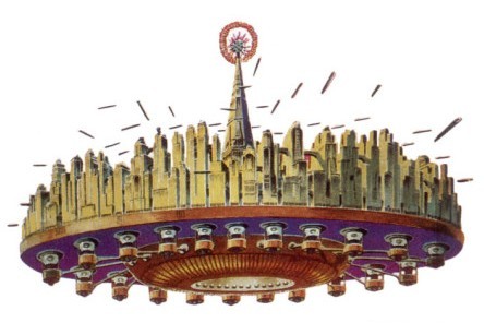 “1929 Future city in the sky, with Tesla power beam” ~retro-futurism