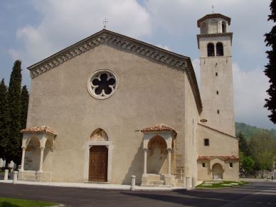 Consecrated in 1303 in the presence of the Patriarch of Grado, the Pieve was built on top of a pre-existing church (probably 4th or 5th century). The hut-shaped façade is adorned with a five-sided rosette and two 16th-century shrines. The bell tower was restored in 1635 after being destroyed by an earthquake.