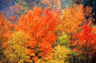 The reddening October trees,