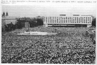 Warsaw, Victory Square, June 2, 1979 Europe was still divided between the politically free democracies of Western Europe and the communist bloc. John Paul celebrated Mass. Halfway through, as Peggy Noonan tells the story in her latest column in the Wall Street Journal, the crowd began to chant: “We want God! We want God!” Then the pope asked the crowd: What was the greatest work of God? Man. Who redeemed man? Christ. Therefore, he declared, “Christ cannot be kept out of the history of man in any part of the globe, at any longitude or latitude. . . The exclusion of Christ from the history of man is an act against man.” The chant turned to thunder: “We want God!” It was the beginning of the end for the communist order in Poland.