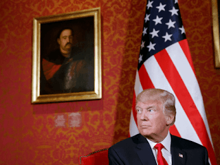 A Portrait of King Jan Sobieski III hangs over President Trump’s right shoulder / AP IMAGECOPYRIGHT NOTICE: